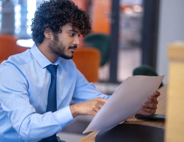 A consultant assisting a student in organizing important academic documents.