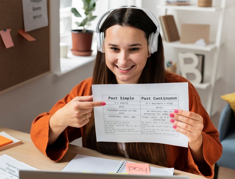 A student confidently reviewing university options with an expert consultant.